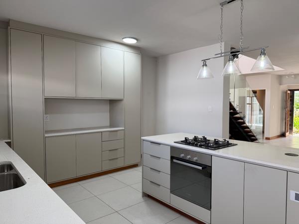 The house features three spacious bedrooms all with plenty cupboard space. The main bedroom includes an tarnquil en-suite bathroom, while the other two bedrooms share a separate well-appointed bathroom.