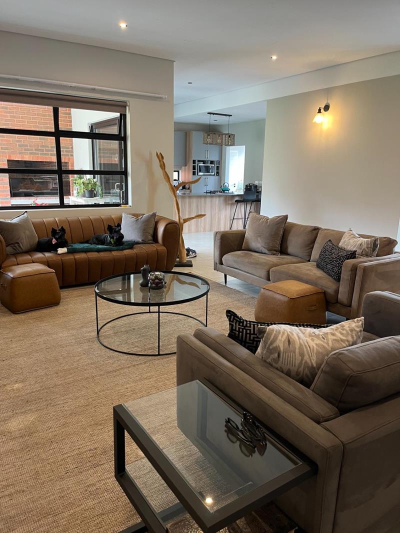 An outdoor braai barbecue area, conveniently located under a covered roof, adds to the charm, allowing for enjoyable gatherings in any weather. Additionally, the property is equipped with a state-of-the-art solar system, ensuring energy efficiency and savings. This modern home offers luxury, comfort, and sustainability in one package.