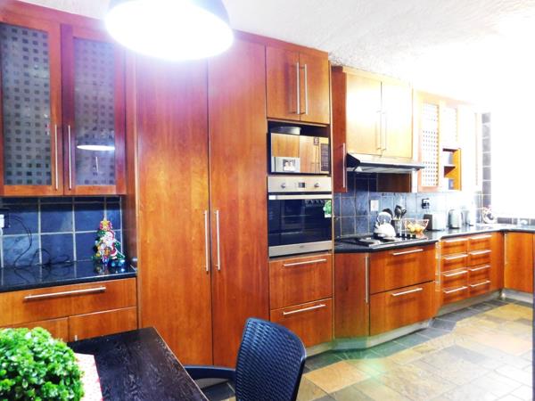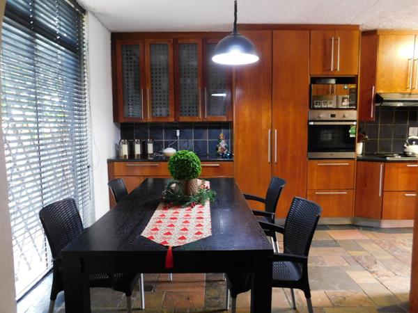 Beautifully designed duplex with a very generous 197 m2 floor space, featuring 4 bedrooms, 2 bathrooms MES with a guest toilet downstairs. The semi open plan lounge and dining room flows seamlessly into the well-equipped kitchen with Cherrie wood cupboards, double eye-level oven and scullery. The complex is perfectly located close to Menlyn, Brooklyn, and easy access to main routes. The complex is pet and child friendly and offers a communal swimming pool and playgrounds for kids.