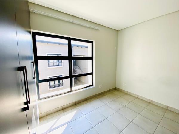 This modern 1-bedroom, 1-bathroom apartment offers a contemporary living space within a secure complex in Menlo Park, Pretoria. Designed with a sleek architectural aesthetic, the unit features large windows that invite ample natural light, creating a bright and airy atmosphere. The functional layout includes a well-appointed kitchen, perfect for daily meal preparation. An inviting balcony extends the living area, providing a private outdoor space for relaxation. The bedroom, with its durable tiled flooring, offers a comfortable retreat, ready for your personal touch as the apartment is unfurnished.
