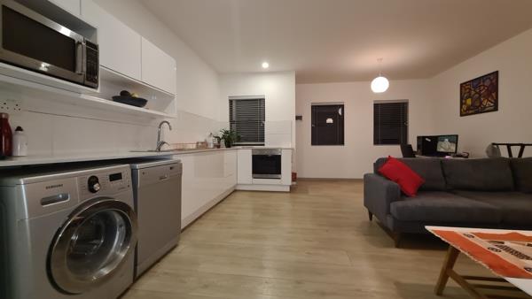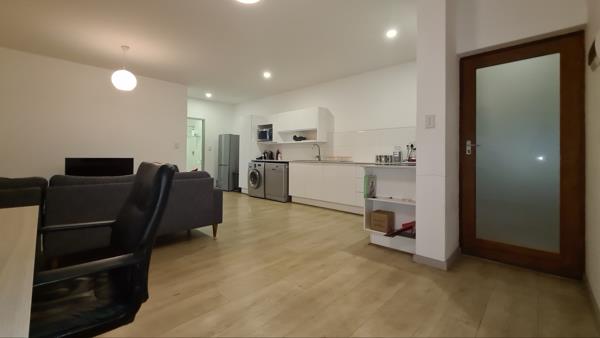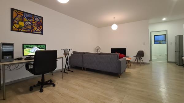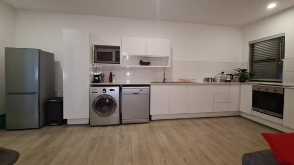 The units open plan interior, with cushion vinyl flooring and contrasting colour scheme gives the impression of space. Complimented with a contemporary well-designed kitchen with high functionality, ideal for creating a simple snacks, three-course gastronomic delights or anything in between whilst providing an impression of openness, serenity and tranquillity in the centre of the hustle and bustle of Pretoria.