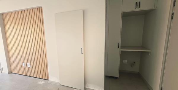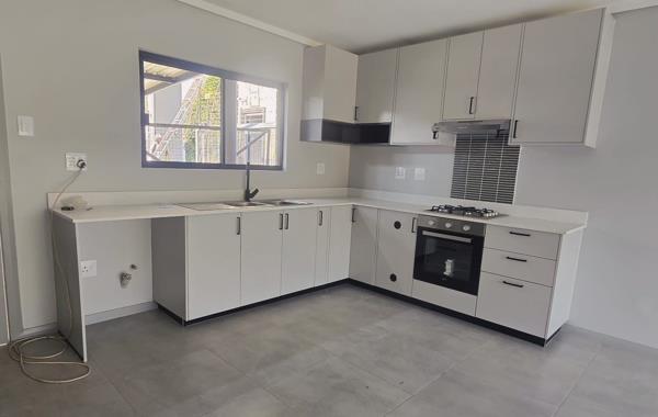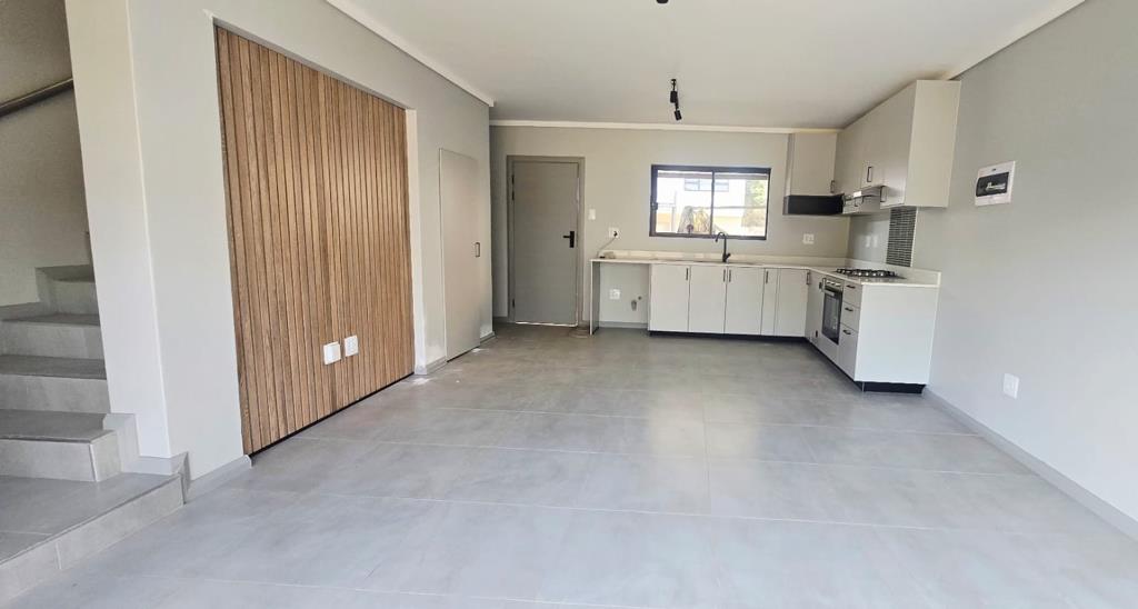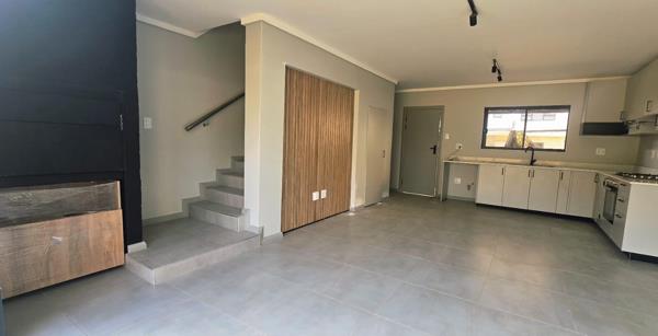 Discover modern living in this stylish 2-bedroom, 2-bathroom unit within a secure Menlo Park estate. This contemporary home features an open-plan lounge and kitchen, boasting sleek grey tiled flooring and light cabinetry. The kitchen is equipped with a new gas hob, oven, and extractor, complemented by a striking wood panel accent wall. A built-in braai enhances entertaining, while the multi-level design connects spaces seamlessly.