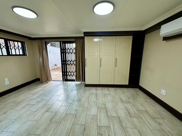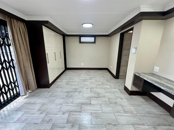 Discover modern, convenient living in this well-appointed 1-bedroom, 1-bathroom rental unit, ideally suited for a single professional or couple seeking a secure and efficient home. This compact, contemporary space features light wood-look tiled flooring throughout, complemented by neutral walls and stylish dark trim. The main living area is equipped with built-in wardrobes and an integrated desk unit, offering practical storage and a dedicated workspace. An air conditioning unit ensures comfort year-round.