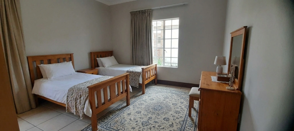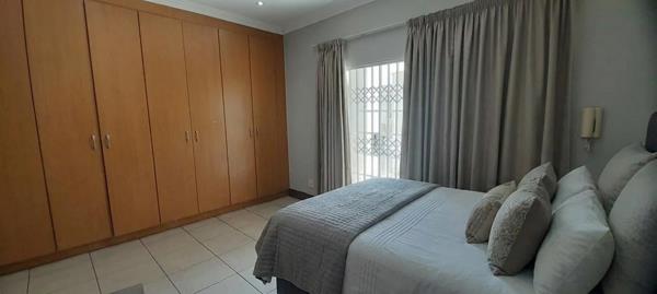 Outdoors, enjoy a covered entertainment area with a built-in braai, an enclosed pool, double garage, and servants quarters. The low-maintenance garden features flower beds, paving, and an irrigation system, with the potential to add a small lawn if desired.