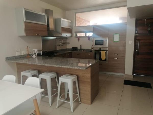 This Apartment consists of 2 bedrooms and 1 full bathroom. The kitchen includes a washing machine, dishwasher, fridge and freezer which is integrated in the kitchen. The lounge and dining room opens on a covered patio on the 1st floor. Bonus, inverter with batteries.