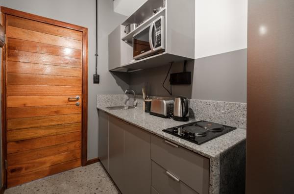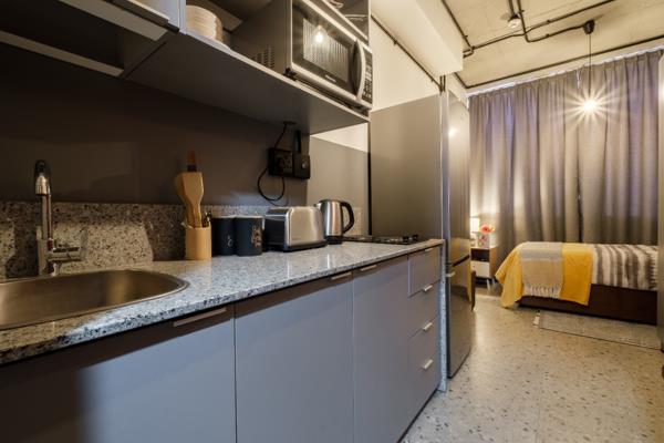 Brand new building! Brand new unit! This bachelor apartment is perfect for a working professional. Furnished with a single bed and headboard, ottoman, closet, fridge and microwave! An open plan layout including a stunning kitchenette and a modern private bathroom. Pre-Paid electricity and a R125 water charge.