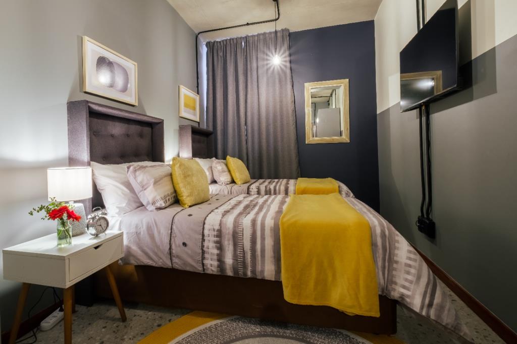 Indulge in this brand new, spacious Bachelor Large unit! Ideal for 2 HOMiis or a couple. Furnished with 2 x single beds and headboards, an ottoman, closets, fridge and microwave! An open plan layout including a stunning kitchenette and a modern private bathroom. Pre-Paid electricity and a R175 water charge.