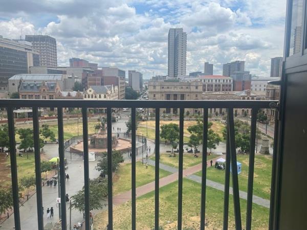 Brand new building! Brand new unit! This bachelor apartment is perfect for a working professional or a couple. Furnished with a queen bed and headboard, closet, fridge and microwave! An open plan layout including a stunning kitchenette and a modern private bathroom. Pre-Paid electricity and a R150 water charge. Stunning views of Park Square!