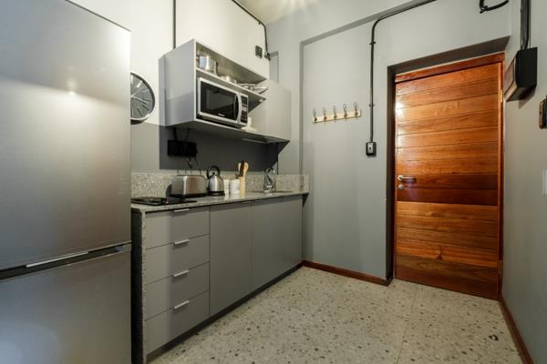 Enjoy this large bachelor apartment as your own private space, or share with a friend, in the best building the city has to offer! An open plan layout including a stunning kitchenette and modern private bathroom. Water charged at R175pm.