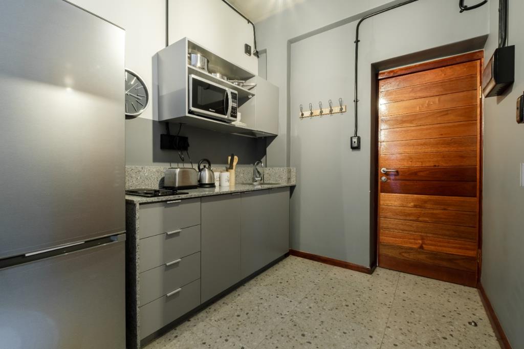 Brand new building! Brand new unit! Stunning views of Church Square! This bachelor apartment is perfect for a working professional or a couple. Furnished with a queen bed and headboard, closet, fridge and microwave! An open plan layout including a stunning kitchenette and a modern private bathroom. Pre-Paid electricity and a R150 water charge.