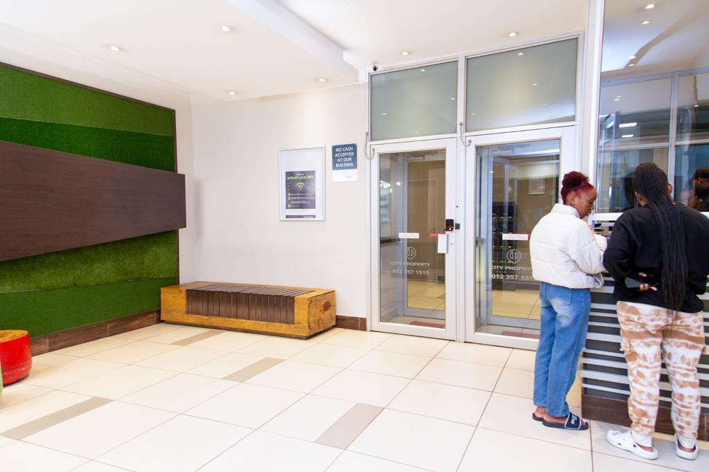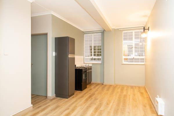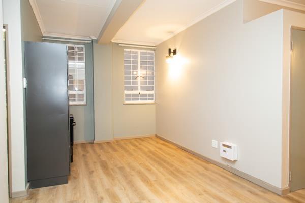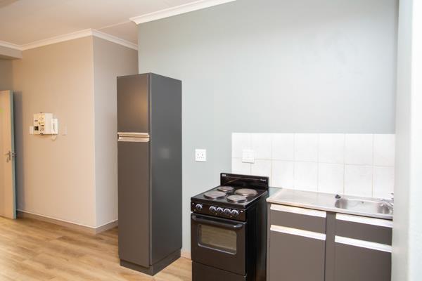 The apartment can accommodate two adults, has a neat kitchen with built-in cupboards and an en-suite bathroom. The rooms are spacious, and the bedroom also has built-in cupboards. Other features include: 24-hour security, biometric access, DStv connectivity, as well as prepaid electricity. Our friendly live-in building manager is there to assist with maintenance and service requests.