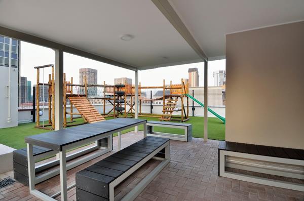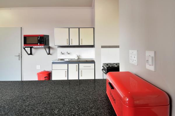 The apartment can accommodate two adults, has a neat kitchen with built-in cupboards and an en-suite bathroom. Other features include: 24-hour security, biometric access, DStv connectivity, parking subject to availability as well as prepaid electricity. Our friendly live-in building manager is there to assist with maintenance and service requests.