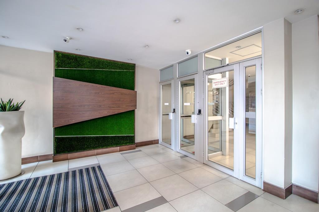 The apartment can accommodate two adults, has a neat kitchen with built-in cupboards and an en-suite bathroom. Other features include: 24-hour security, biometric access, DStv connectivity, parking (subject to availability) as well as prepaid electricity. Our friendly live-in building manager is there to assist with maintenance and service requests.