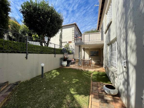 Upon entering, you''re welcomed by a stunning foyer that includes a private guest restroom. The heart of the home is a stylish kitchen equipped with space for all your appliances, elegant granite countertops, and abundant cabinetry. This blends seamlessly into a delightful living and dining area, complete with a cozy working fireplace. Step outside to a shaded patio, complemented by a well-maintained, low-maintenance garden featuring a built-in braai and ample space for children''s play. Additionally, the ground floor offers a guest bedroom and a full bathroom, which can also serve as a study.