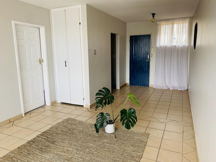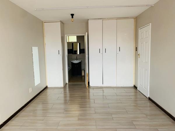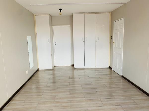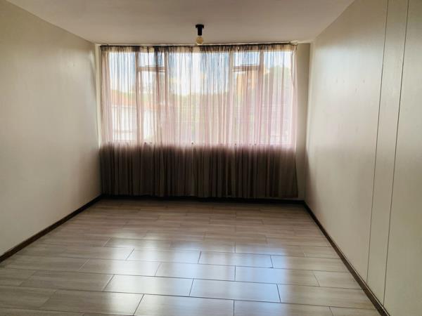 A lovely and spacious one bedroom flat on a quiet street in leafy Sunnyside. Open plan lounge and dining room. There is space for a single fridge in the kitchen. All rooms have tiles. First floor, 24 hour security. Prepaid electricity. Very close to Loftus Park.