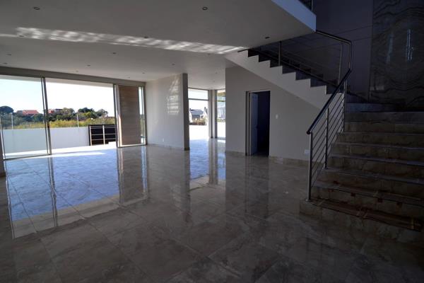 Upstairs, the luxurious main suite is a sanctuary of comfort, featuring a pajama lounge, a full en-suite bathroom with double basins, and access to a private balcony with breathtaking views. Four additional bedrooms, each with its own en-suite bathroom and balcony access, offer ample space for family and guests. Stainless steel stairways and elegant balcony handrails add a touch of modern sophistication to this already impressive home.