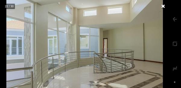 Discover this exceptional modern residence available for rent within a prestigious security estate in Waterkloof Ridge, Pretoria. Designed for contemporary living, this spacious home boasts six well-appointed bedrooms, including four luxurious en-suite bathrooms, alongside an additional fourth bathroom. The interior features an expansive open-plan layout, highlighted by two generous lounges, a dedicated dining room, and a modern kitchen equipped with a large dark marble island and sleek cabinetry, perfect for culinary enthusiasts. Large windows and glass doors throughout ensure abundant natural light, complementing the clean tiled flooring and recessed lighting.
