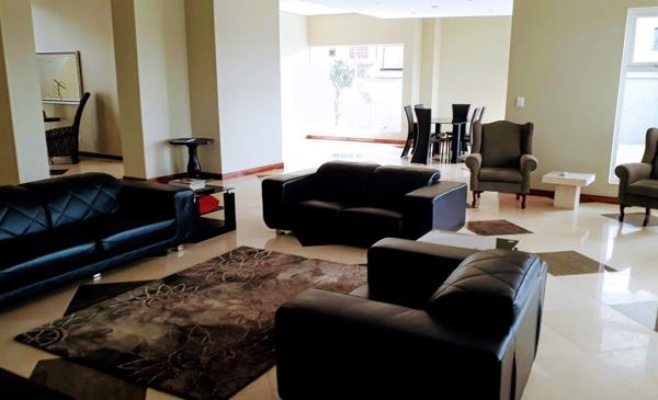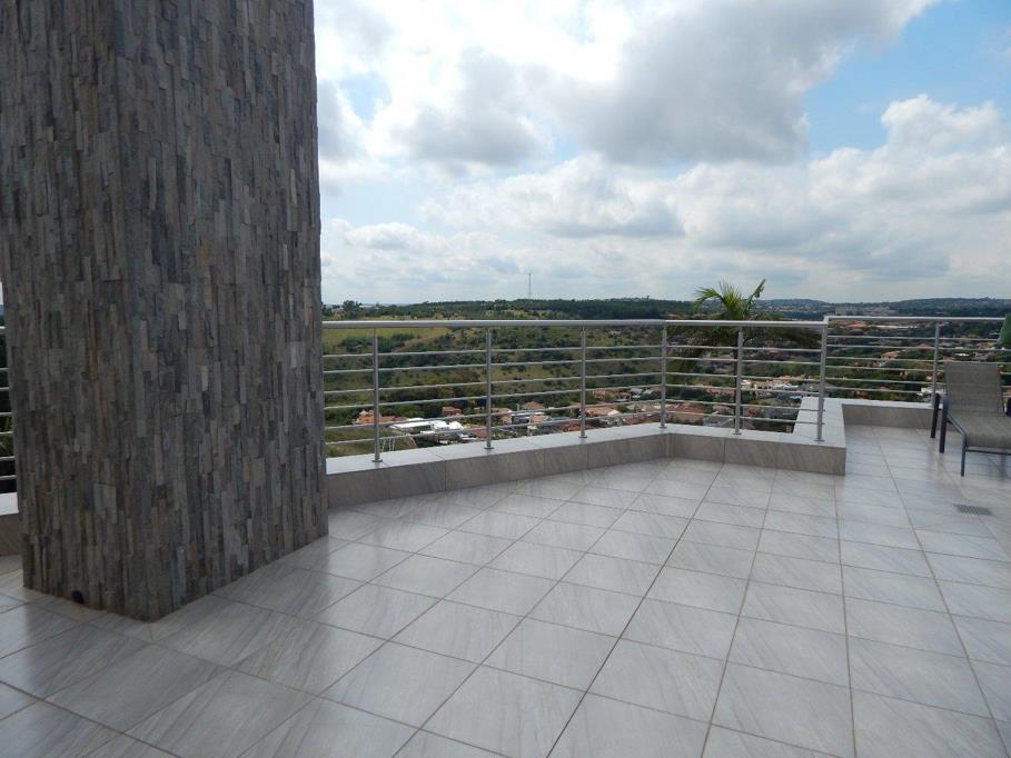 The expansive patio provides incredible views of Waterkloof Ridge, overlooking a spacious decked pool area.
