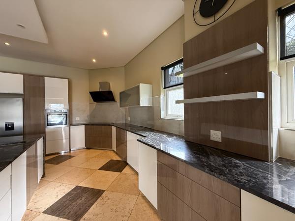 Discover this expansive 6-bedroom, 6.5-bathroom residence available for rent in the sought-after Waterkloof Ridge, Pretoria. This luxurious home boasts six en-suite bathrooms and an additional guest toilet. The interior features an inviting open-plan layout, seamlessly connecting a spacious lounge, a dedicated dining room, and a comfortable family TV room, ideal for both relaxation and entertaining. A well-appointed kitchen with a pantry caters to all culinary needs, complemented by a private study for focused work.
