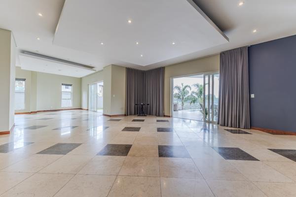 This distinguished residential rental property, situated within a secure gated community in Waterkloof Ridge, Pretoria, offers an unparalleled living experience. Spanning an impressive 1050.00 sqm on a 1600.00 sqm erf, this modern residence is meticulously designed for sophisticated living and grand entertaining. The expansive open-plan interiors feature high ceilings, elegant recessed lighting, and a blend of polished tiled and distinctive checkerboard flooring, creating a refined aesthetic throughout. A striking spiral staircase with stainless steel railings and integrated step lighting serves as a focal point in the entrance hall, enhancing the property''s architectural grandeur.