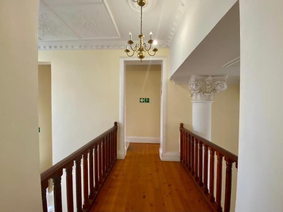 Discover a distinguished residential rental opportunity in the esteemed Waterkloof suburb of Pretoria. This meticulously appointed one-bedroom, one-bathroom unit is situated within a grand property, offering a blend of classic elegance and modern convenience. Upon entry, residents are greeted by an opulent common area featuring a sweeping marble staircase, intricate ceiling details, and polished marble flooring, setting a tone of sophisticated living.