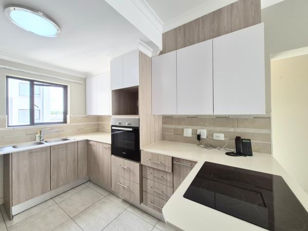 The kitchen boasts plentiful cupboards and has space and connections for a washing machine, dishwasher, and a single-door fridge. It features a beautiful Quartz countertop, as well as a stovetop and oven.