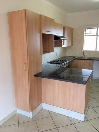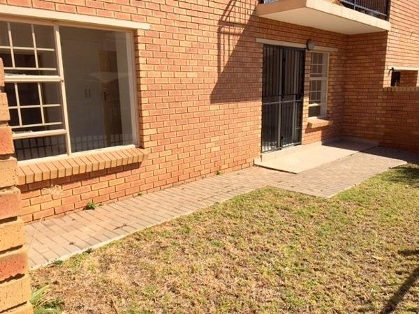 Situated in a 24 hour guarded access controlled complex, this large 2 Bedroom ground floor unit is available from the 1st of December 2025. Close to schools, the N1 and R21 highways, as well as within walking distance from a shopping complex. It has a spacious dining room / lounge, which leads out onto a patio and an enclosed garden. The open plan kitchen is equipped with generous wood finished built in cupboards, granite tops, and has space for two under counter appliances and a small breakfast nook.