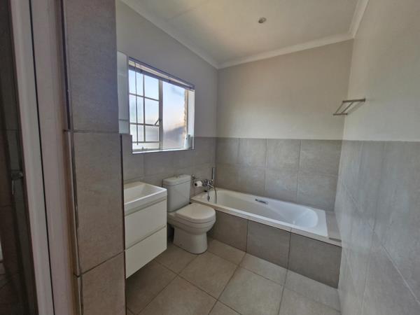 Kitchen with sufficient cupboard space. Gas hob and electric oven. There is space for 1 front loader appliance and a single door fridge.