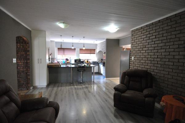 The living areas flow effortlessly, with an open-plan kitchen and lounge leading into an additional family room and a welcoming braai room complete with a built-in braai. The kitchen impresses with a double oven, gas stove, separate scullery, and a dedicated laundry area, making daily routines smooth and efficient. The large, easy-to-maintain garden provides a generous outdoor space to enjoy, adding to the home''s warm and family-friendly appeal.
