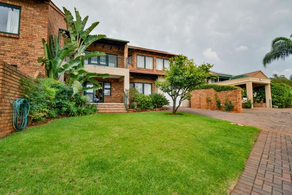 Outdoor living is a standout feature, with three separate patios providing multiple areas to relax or entertain. The beautifully maintained garden includes a charming boma, perfect for evening gatherings, and the upstairs lounge opens onto a lovely balcony with views over the estate. A secure tandem garage adds practicality with ample parking and storage space. Ideally located close to schools, shops, and main access routes, this home effortlessly combines comfort, style, and convenience.
