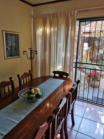 This well maintained and spacious home offers comfortable living in a most convenient area close to Menlyn, schools, Faerie Glen Hospital and the N1 by-pass. It has an open plan lounge, dining room and kitchen in a secure and safe complex. There are tiled floors throughout the ground floor with a practical kitchen having ample cabinets, a double sink, and a stove, ready for your culinary adventures. It has a bathroom with bath, basin and toilet and a separate shower upstairs as well as a guest toilet downstairs. This home boasts 120 sqm of floor space plus a tiled roof lapa in a minimum maintenance garden, ideal for a braai with friends and family. There is also lockable storage under the stairs. Fibre connectivity is available for working from home or social media connectivity.