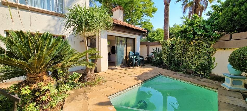 Step outside to a private oasis designed for relaxation and entertainment. The lush, established tropical garden, complete with an irrigation system, surrounds a refreshing swimming pool, perfect for cooling off on warm South African days. A paved patio area provides an ideal setting for outdoor dining and social gatherings, further complemented by a built-in braai. This pet-friendly residence is perfectly suited for families or professionals seeking a secure and comfortable lifestyle with ample space for both indoor and outdoor activities. The thoughtful layout and features make it an excellent choice for those who appreciate privacy and a vibrant living environment.