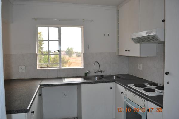 Kitchen with ample cupboards and space for Fridge and front loader washing machine