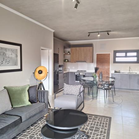 Discover modern elegance with this beautifully designed 2-bedroom, 2-bathroom ground-floor apartment in the exclusive Stack building, a prime new development in Rietvalleirand. Perfect for couples or individuals working from home, this unit offers a blend of style, convenience, and low-maintenance living.