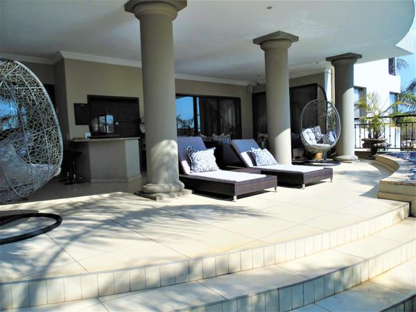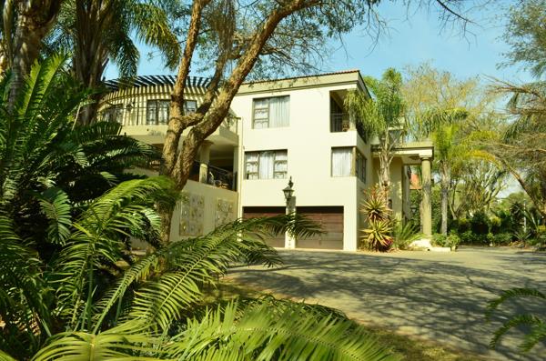 This contemporary multi-story residence covering 750 m2 on a 1142 m2 stand is nestled in a tranquil palm tree garden. The multiple doors and expansive windows not only provide natural light and ventilation but also offer breathtaking views of the beautifully manicured garden. Four en-suite bedrooms, four reception areas, library/study, gym, kitchen with scullery, four garages extra length with storage space, staff accommodation, and a storeroom. This residence was designed for a family who appreciate luxury and style in a security estate