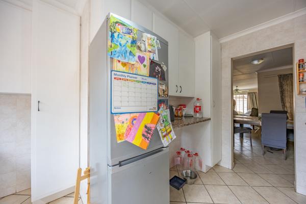 Discover comfortable estate living in this inviting 3-bedroom, 2-bathroom home available for rent in Pretoria. Spanning 138 sqm, this residence offers a practical layout designed for modern family life. The functional kitchen features white cabinetry, granite countertops, a built-in oven, hob, and extractor fan, alongside dedicated spaces for multiple appliances. An adjacent scullery provides a double sink and additional under-counter appliance space, ensuring convenience. The open-plan design seamlessly connects the kitchen to a dining room and a spacious lounge, creating an ideal environment for entertaining and daily living.