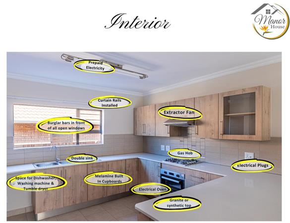 With a gas hob 4 burners and a solar geyser you can save on your electricity, which is also monitored by a pre-paid meter.