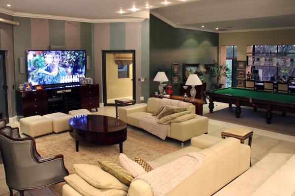 A highlight feature in this residence, one has the fairways on both sides of the home, the residence is situated on a 2600m2 stand in Woodhill, it offers 7 bedrooms all en-suite and include you have your own butler flatlet, apart from being an architectural masterpiece, this home was made for entertaining with a full size billiard table, a home theatre, a bar, Jacuzzi, swimming pool, gym and separate club house with several sitting areas