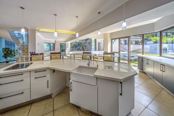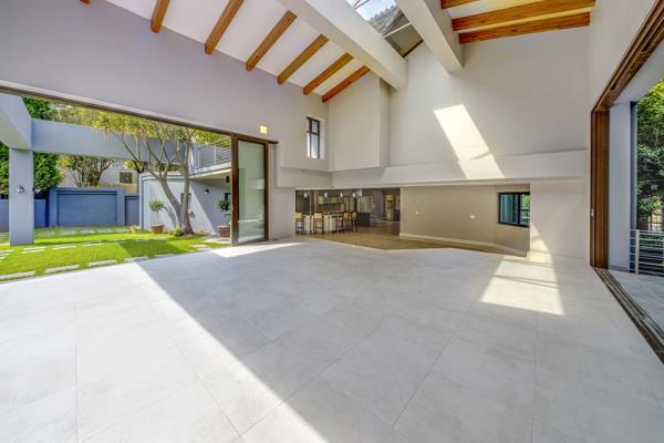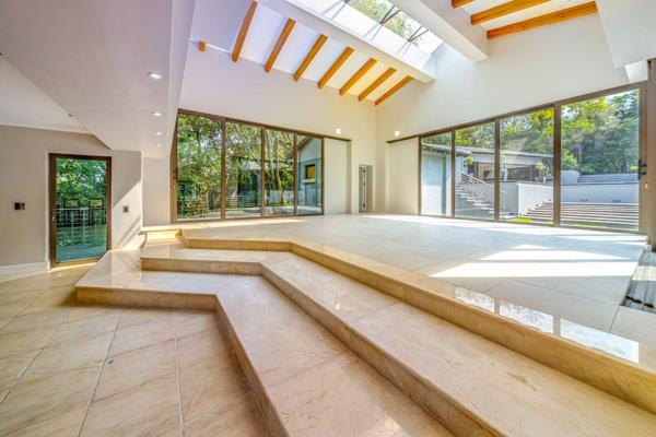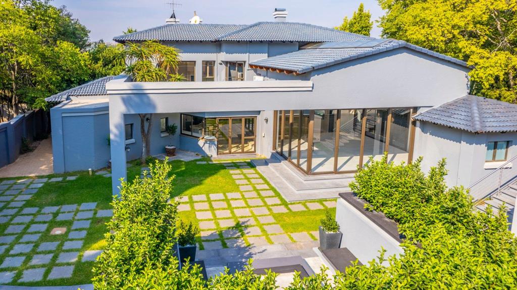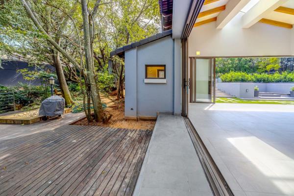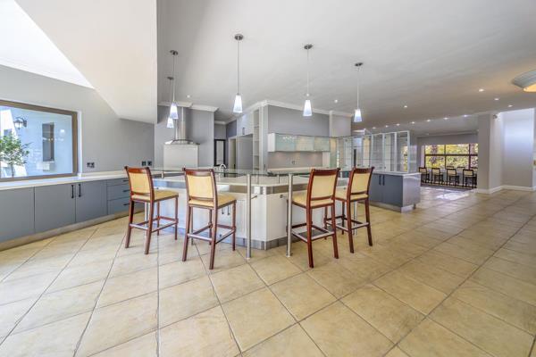 The pool house is designed for unforgettable outdoor living, complete with a large entertainment area, built-in gas braai, and guest bathroom. Water features throughout the garden add a tranquil atmosphere, while a full backup generator ensures peace of mind.