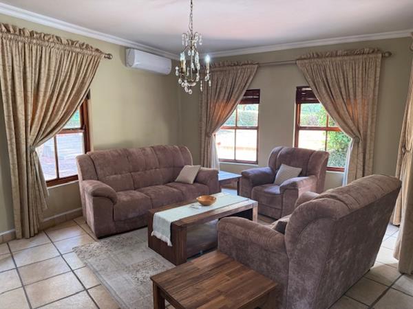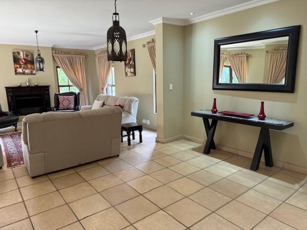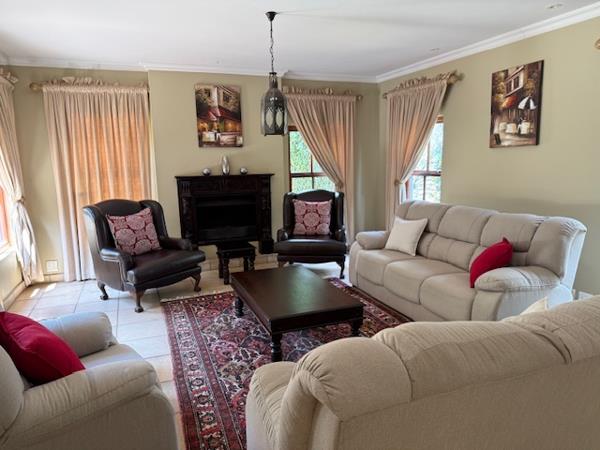 Nestled on a quiet street in Woodhill Golf Estate, this beautiful furnished 4 bedroom , 4 bathroom home offers luxury living with serene views of the fairways. Designed with comfort and style in mind, the open plan living area flows seamlessly onto a spacious patio perfect for entertaining or enjoying peaceful afternoons overlooking the fairways. The home boasts 2 generous lounges, one with a charming fireplace, creating warm inviting spaces for both relaxation and entertaining. A separate, private study provides the ideal work setup. Upstairs, a cozy family pyjama lounge connects the 4 bedrooms, 4 bathrooms opening onto private balconies that capture breathtaking fairway views.