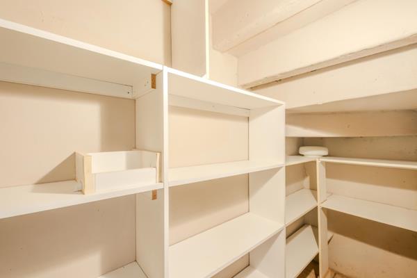 Well-designed kitchen with a walk-in pantry and a back door leading to a courtyard