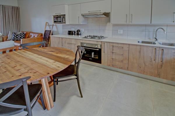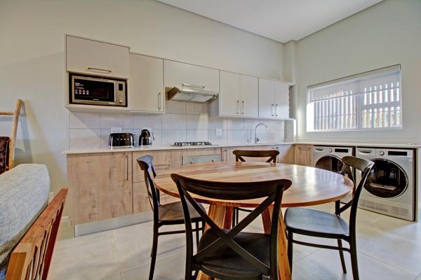 Kitchen has caesarstone countertops. SMEG gas stove. Space for double door fridge and 2 machines.