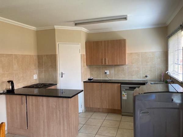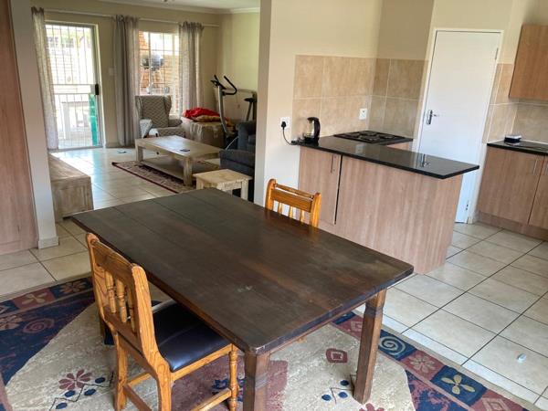 Discover comfortable, secure living in this beautifully maintained 3-bedroom, 2-bathroom simplex nestled in a sought-after complex in Equestria, Pretoria East. The home features an open-plan kitchen, dining, and lounge area that flows seamlessly through glass sliding doors onto a covered patio complete with a built-in braai perfect for relaxed outdoor entertaining.