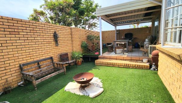 Step outside to a private, totally walled backyard designed for effortless outdoor living. A covered patio, complete with a built-in braai, offers an ideal setting for entertaining guests or enjoying quiet evenings. The low-maintenance artificial turf garden features a charming fire pit area, perfect for relaxation. This pet-friendly residence also includes a double garage, a paved driveway, and additional covered parking, providing ample space for vehicles. The practical design caters to both individuals and small families seeking comfort and convenience.