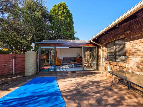 Step into the inviting sunroom an ideal space for morning coffee, a reading nook, or even a playroom, overlooking a splash pool and a generously sized, lush garden, perfect for family gatherings or quiet afternoons.