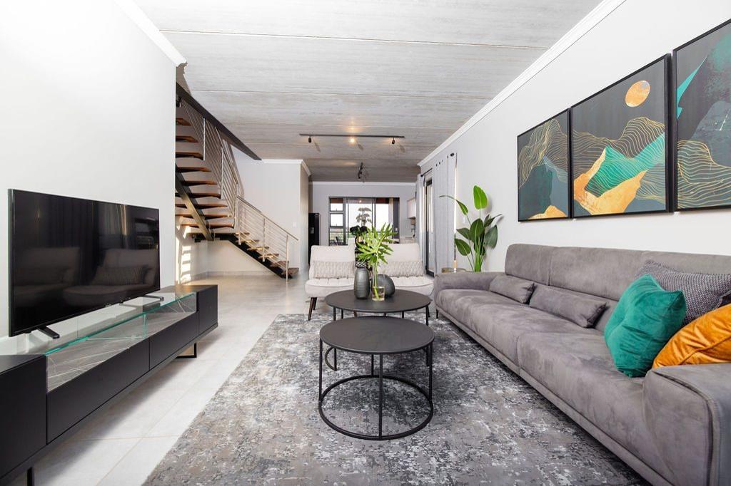 Ultra-Modern unit boasting 3 spacious bedrooms and 2 bathrooms of which the main bedroom enjoys an en-suite-bathroom. 2 Big open plan living areas, a study. Kitchen with ample cupboards and a scullery. Guest cloak, private patio and braai, a garden and a double garage.