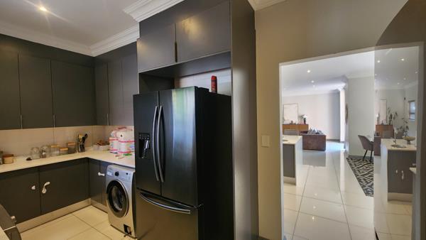 Step outside to the covered patio with a built-in braai, overlooking a sparkling swimming pool and neat garden a perfect space for entertaining or unwinding after a long day.