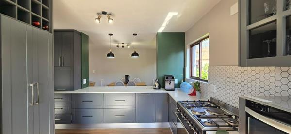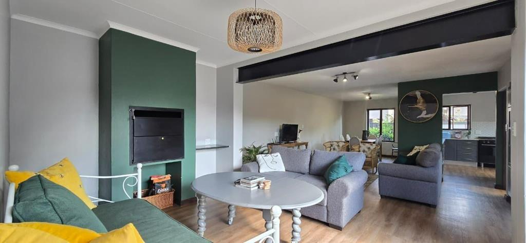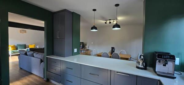 The home features an inviting open-plan layout, where the modern kitchencomplete with ample cupboard spaceflows seamlessly into the dining area and lounge/TV room, creating an ideal setting for family living and entertaining.