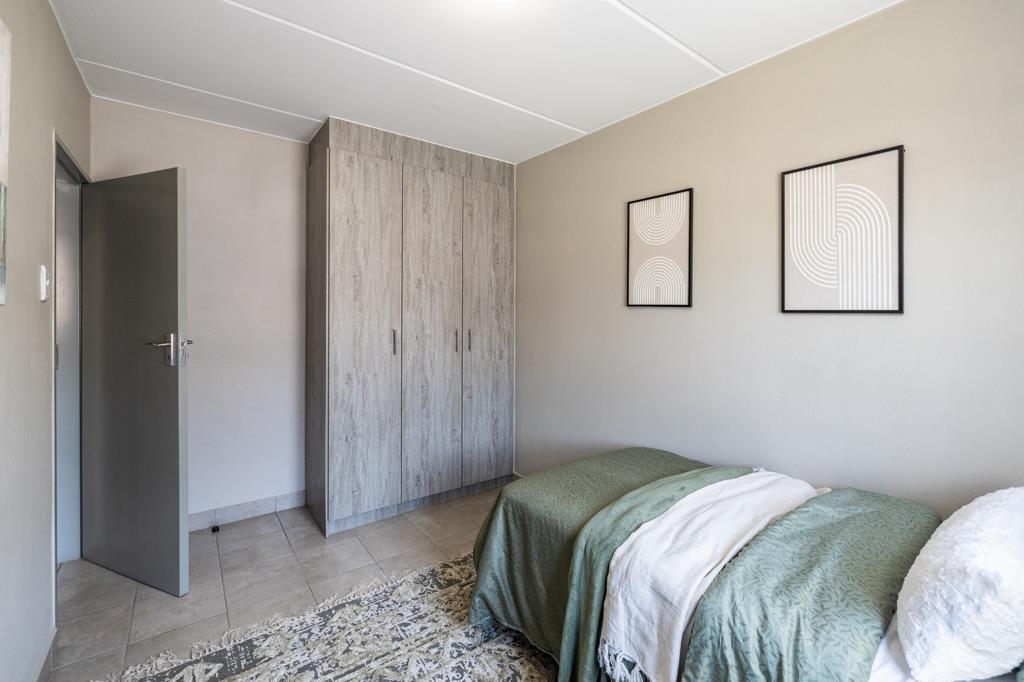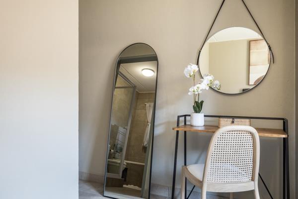 The trendy apartment offers an open plan living area with modern tiles, contemporary kitchen with built-in oven and stove, granite tops and contemporary marble tile and extra space for a washing machine or dishwasher. Immaculate bathroom with spacious shower and modern fixtures and fittings. Built-in cupboards in both bedrooms. Individual water meters as well as prepaid electricity meters. Provisions for fibre.