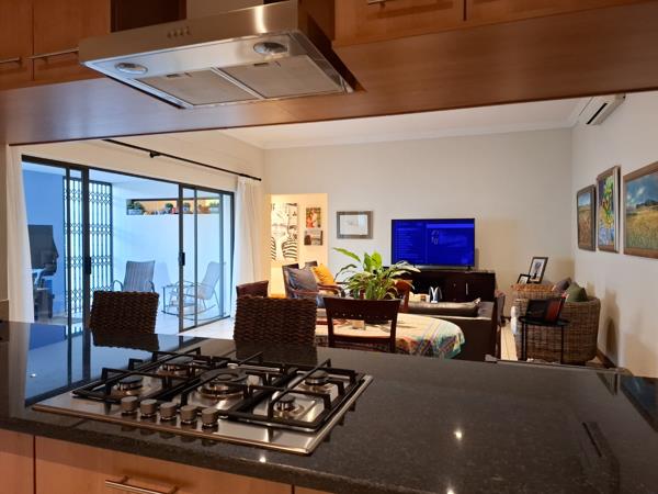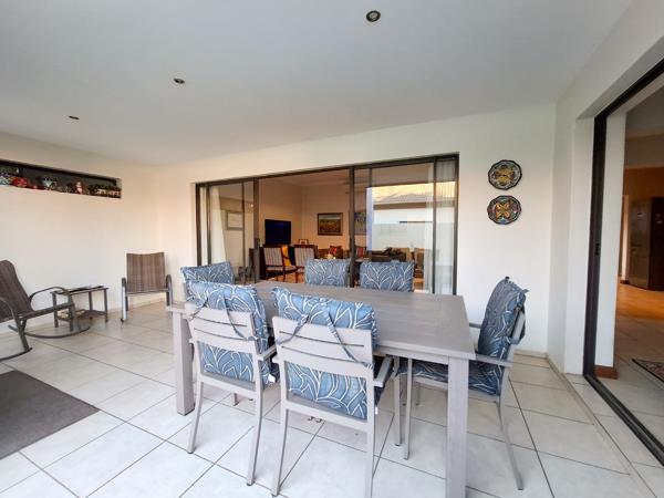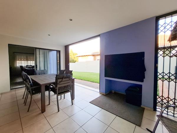 The spacious living area, flows effortlessly through large sliding glass doors to a covered outdoor patio. This private space is perfect for relaxation and entertaining, featuring a built-in braai and direct access to a private gardenlawn area. The property is pet-friendly, making it ideal for families or professionals seeking a comfortable lifestyle with indoor-outdoor living options.